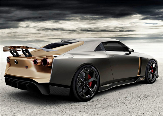 Nissan GT-R50 係為了慶祝車系與 Italdesign 雙雙誕生五十週年而推出的紀念原型車,其中以 GT-R 為基礎,換裝上黑金色的科幻外觀,並導入更先進的空力設計以及主動式升降尾翼,帶來更優異的操駕身段,其中內裝更導入豐富的碳纖維與 Alcantara 麂皮部品,企圖營造更肅殺的感受。