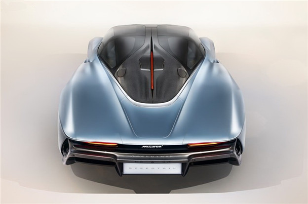 要成為頂尖GT超跑,McLaren從外型設計、材料科技著手,為創造極致空氣力學表現,Speedtail於車身任何角落皆是以滑順曲雕刻,前輪也以固定式碳纖維外蓋營造最佳導流效果,以整體車身外觀數據來看,其車身寬度比P1窄、車長卻有5137mm,使其可輕鬆承載三人又富有修長流線的視覺感;至於下壓力營造,則是交給長尾末端的「可變型彈性尾翼」,讓Speedtail確保低風阻之於也有可靠抓地力,造型也更優雅。