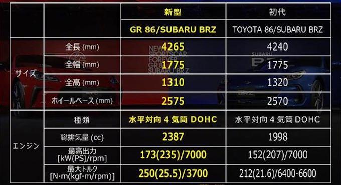 動力方面,全新GR 86採用2.4L水平對置發動機,最大馬力為235Ps,最大扭矩為250Nm,匹配6MT或6AT波箱,前置佈局,官方給出的0-100km/h加速時間為6.3秒。除了更強的動力之外,新車的發動機還具有更好的響應能力,新一代GR 86還擁有各種空氣動力學設計,可以改善行駛穩定性和轉向響應性。
