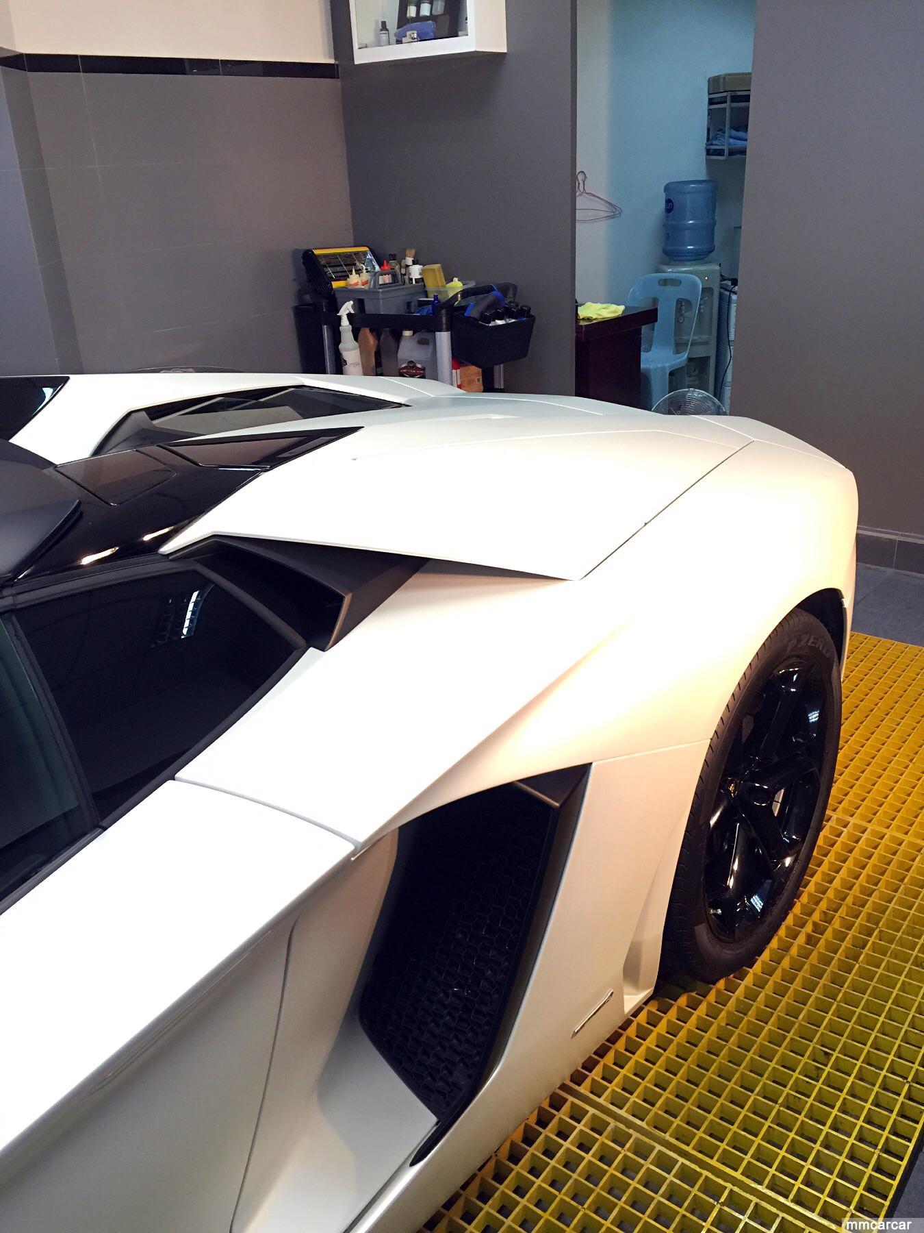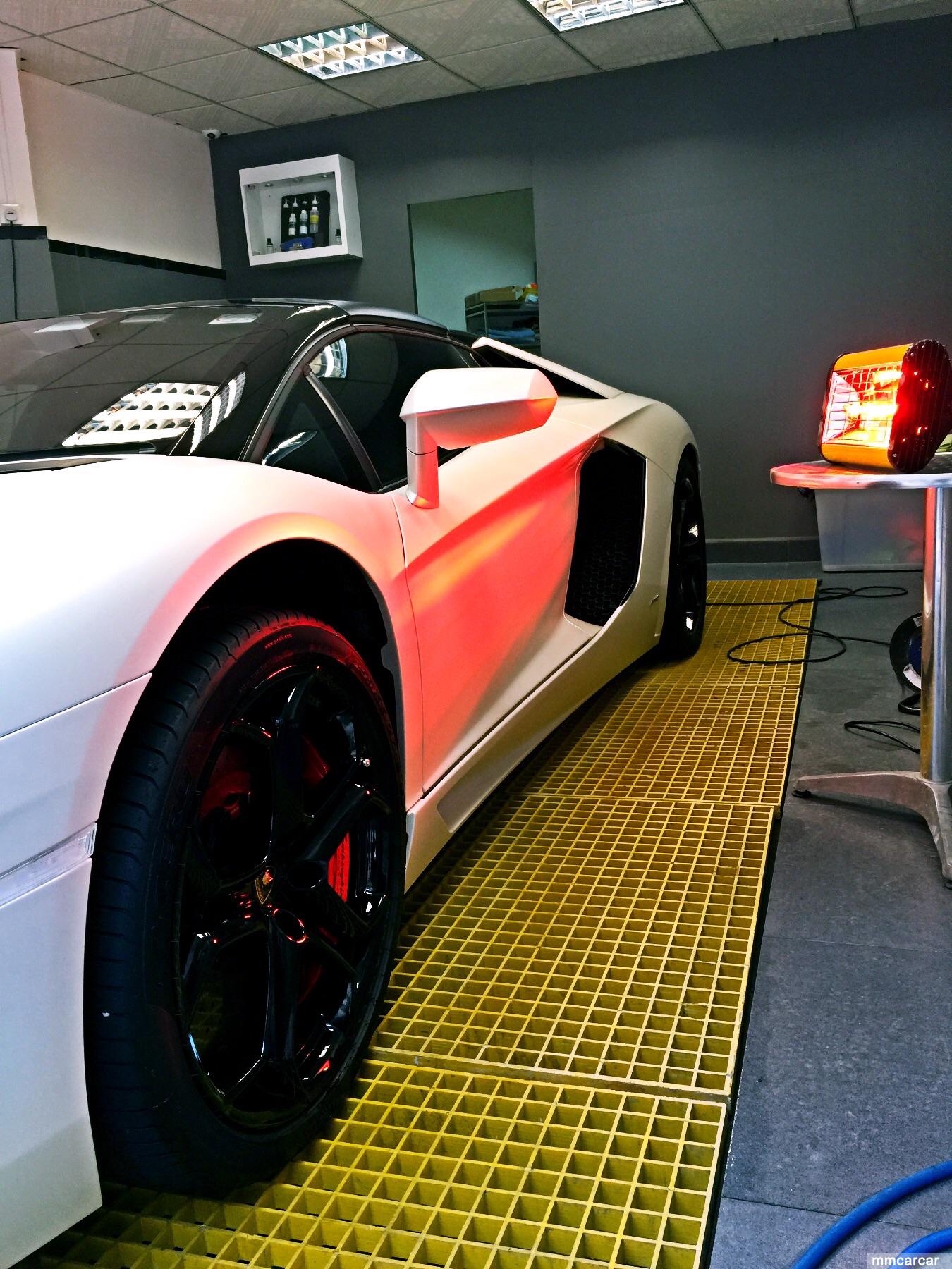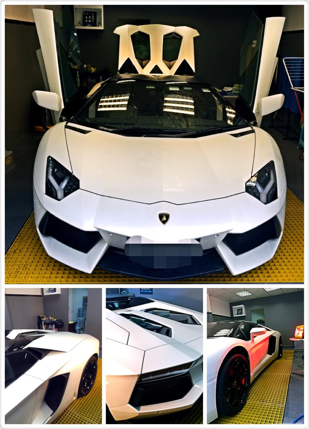Lamborghini AVENTADOR LP--700 4 ROADSTER 車主選用左本店皇牌鍍膜Sio2 35% coating (4H硬度)因為部車原廠系啞白色所以要做多一層消啞劑落去先再用鍍膜液。完成後一放出街收視率爆曬燈。擁有超跑的你,HIKARI係你不二之選,熱切為你地愛車服務。