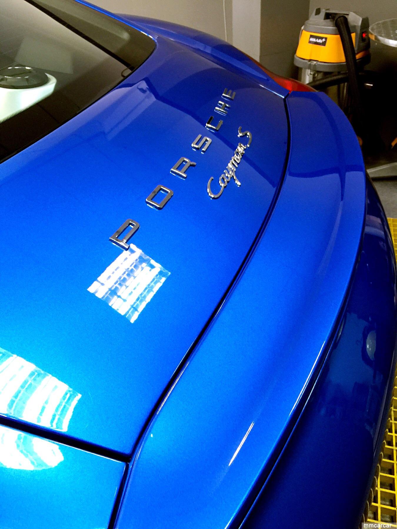 CaymanS 銀底藍,又係藍色近期做左好幾架藍色跑車,睇得太多黑白銀灰,深藍或者銀底藍都好sharp,鍍膜完成後車身睇落去有一層0.4um薄膜層,整個車體有包漿感,簡單D講就D係女人成日話塊面水水的感覺。